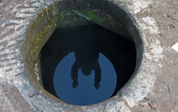 在村里一口水井旁,坤坤和自己的影子玩起来,村里人都不敢让孩子和罗坤玩,没有玩伴,他就自己到处游荡,自娱自乐。